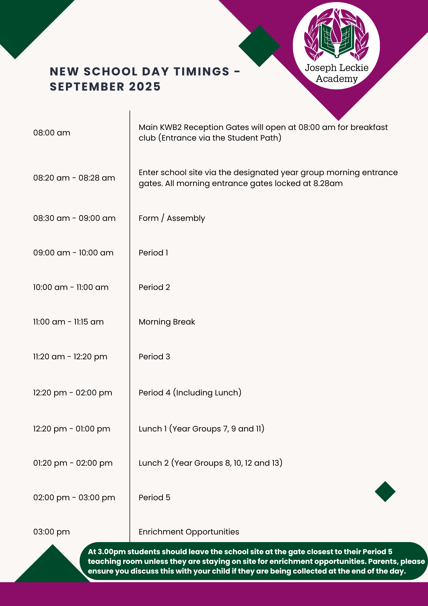 - If they are being driven to the Academy, please drop your child off at a safe point and be respectful of local residents’ drives.