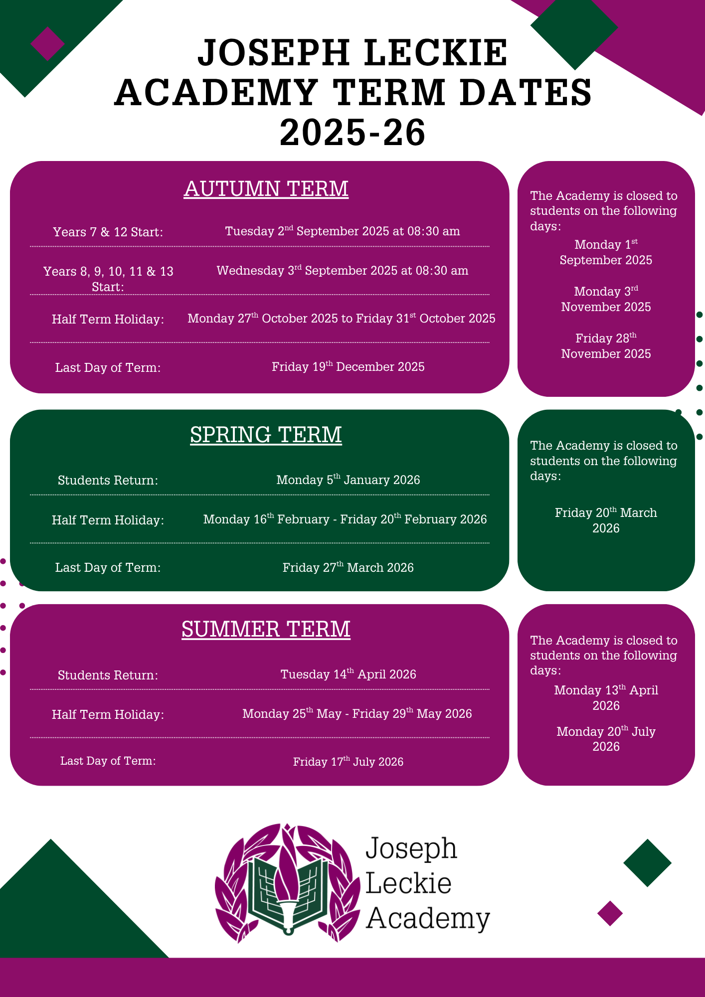 Students are looked after and supported throughout their time at Joseph Leckie Academy by their Form Tutor and Head of Year (HOY).